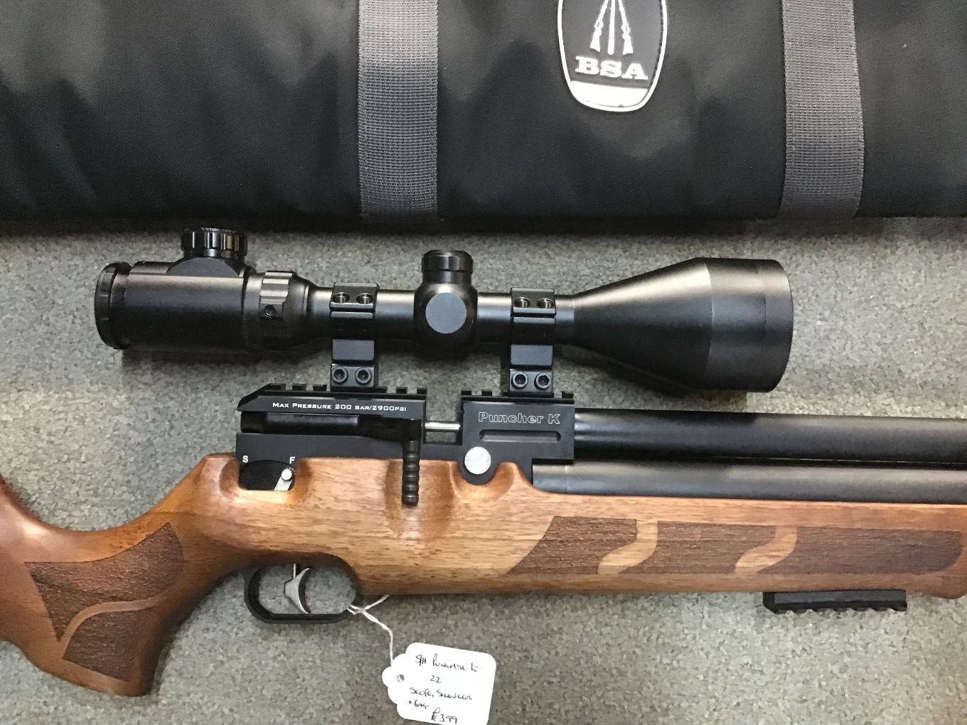 Complete with a 3-9×56 EG Scope, Silencer, 2 x Magazines & Bag