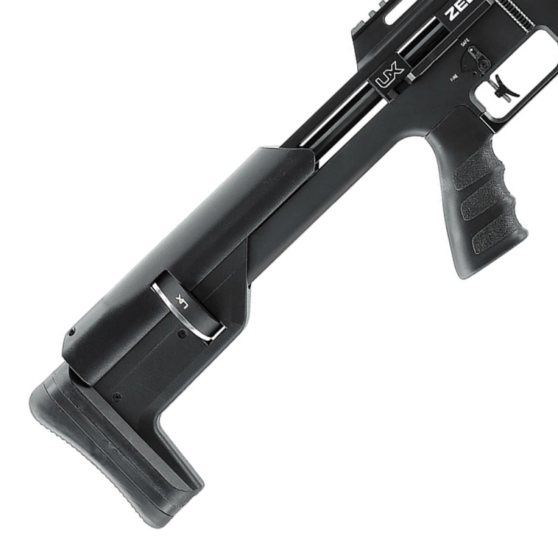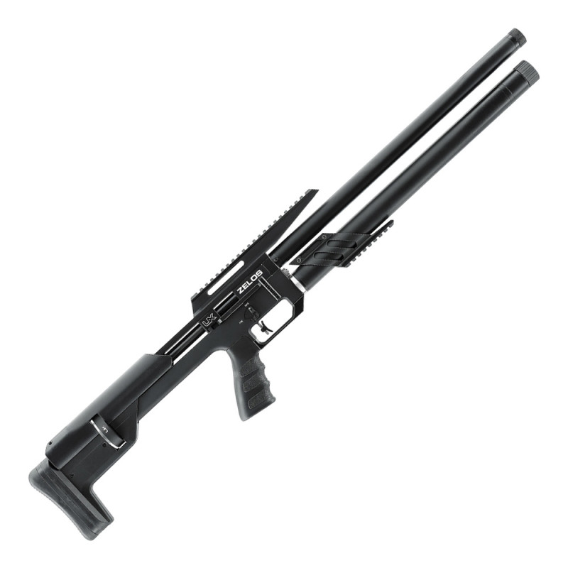 The Umarex Zelos, a compact bullpup pre-charged pneumatic (PCP) air rifle engineered for precision and power. With a 66 cm barrel integrated into a 91 cm frame, the Zelos ensures exceptional accuracy and maneuverability.